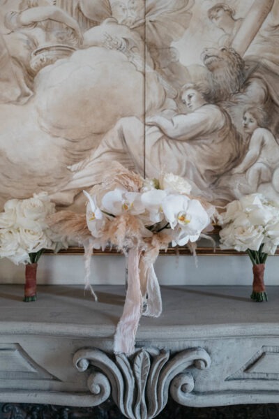 As experienced wedding planners in Italy we start most of our projects, by first looking at the color palette of the big day. Ancient wedding venues in Tuscany tend to have their own very rustic coloring, and the Abbazia di San Galgano is no different. The natural stones that form its walled arches have been elegantly weathered with age, giving them an unpolished quality that juxtaposes so well with any naturally refined elements that we place within its walls. So to balance the colour scheme with the abbey, the couple chose a selection of ivories and golds with touches of dusty green and pink. They really wanted to enchant their guests with the elegance of the space and then elevate it to another level with their choices of color.