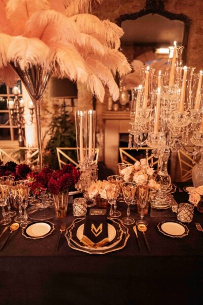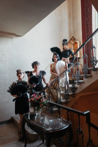 The Roaring 20s Comes to Rural Tuscany in Extravagant StyleOne of the most special wedding venues in Tuscany, Relais Borgo Santo Pietro is adept at satisfying their guests desires, in surroundings that are beyond luxurious. What Maria & Matus wanted was to throw a Gatsby inspired wedding dinner and circus show, and that’s exactly what they got! Using a color scheme of dark blues, golds, pinks and a touch of burgundy – we created a 1920s Parisian extravaganza in the heart of rural Tuscany! Following an opulent evening meal with bespoke decorations, the guests, all dressed in outfits matching the theme, were individually led from their seats to the party by a procession of performers. From flappers and fire-eaters to jugglers and Hula-Hoop girls, the guests truly became part of the party and lost within another world, another time. It was a proud moment for us to savour and a magical touch felt by the newly-weds. The perfect end to a fantastical two-day wedding in beautiful Tuscany.